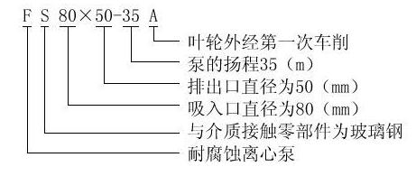 三、FS型臥式玻璃鋼離心泵,FS型軸聯玻璃鋼離心泵型號意義: